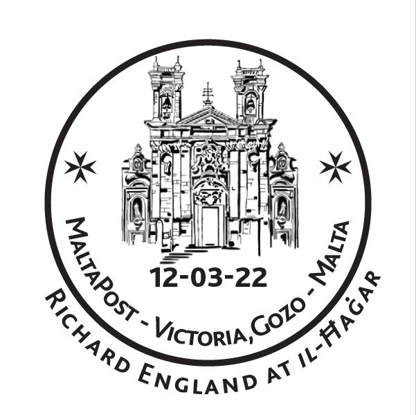 MaltaPost would like to notify the public that a special hand stamp will be issued to honour Richard England at Il-Ħaġar 2022. This handstamp will be used on Saturday 12th March 2022 at the Victoria Post Office in Gozo, situated at 5, Triq Sir Adrian Dingli, Rabat VCT 1441.