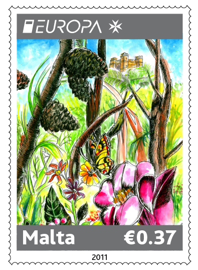 The Best EUROPA Stamp Competition is a yearly online event where creative entries from across Europe compete for the best design in stamps. The first competition took place in 2002. Each year, PostEurop's Stamps and Philately Working Group select the EUROPA Stamp theme - this year being "Forests" as 2011 was declared by the United Nations as the International Year of the Forests. The Maltese stamp depicts the artists personal interpretation of "Forests" in thecontext of the Maltese Islands.